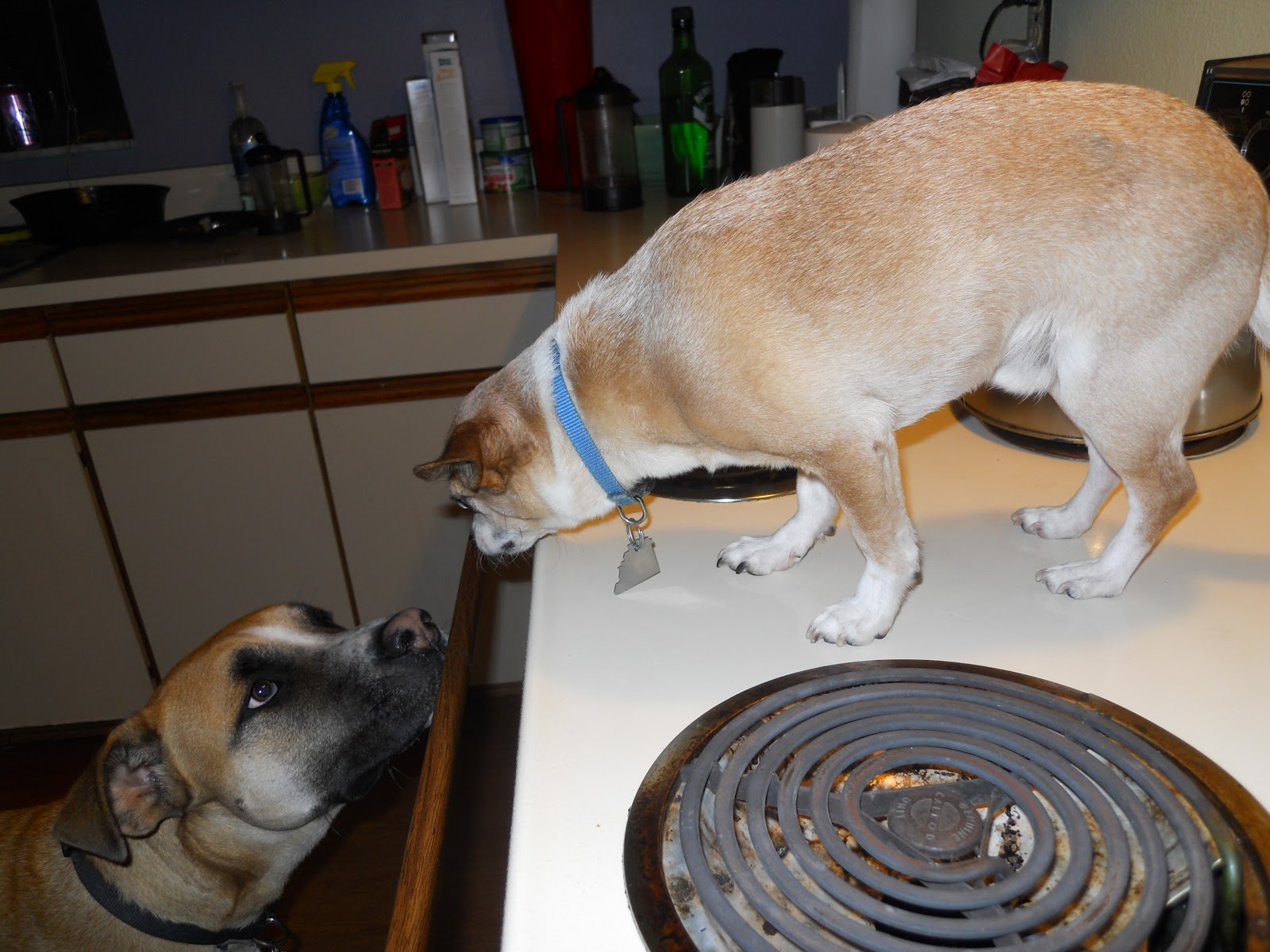 OK, So as a civilized human being we're expected to do mundane tasks like "Cooking" and "Cleaning". So after cooking with a little grease that spattered on the counter. When the oven cooled down, I put Taco up on the range to clean it off. Pretty sweet huh?